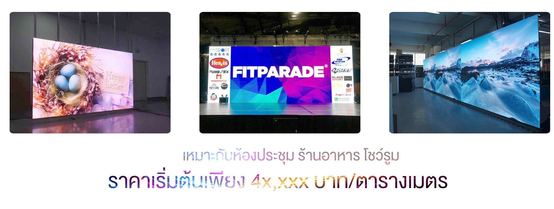 หอประชุมหรือห้องประชุมขนาดใหญ่นิยมใช้จอ LED รุ่น P2.5 - P4 เพื่อความชัดเจนในการนำเสนอเพราะให้ภาพที่ชัด ความคมของตัวหนังสือภาพประกอบอีกทั้งยงใช้เป็นฉากหลังสำหรับงานแสดงแสงสีเสียงใจคอนเสิร์ตต่าง เพราะติดตั้งง่ายขนย้ายสะดวก